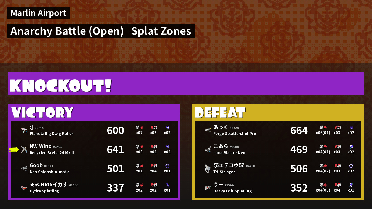 | Mode | Splat Zones - Anarchy Battle (Open) | ||