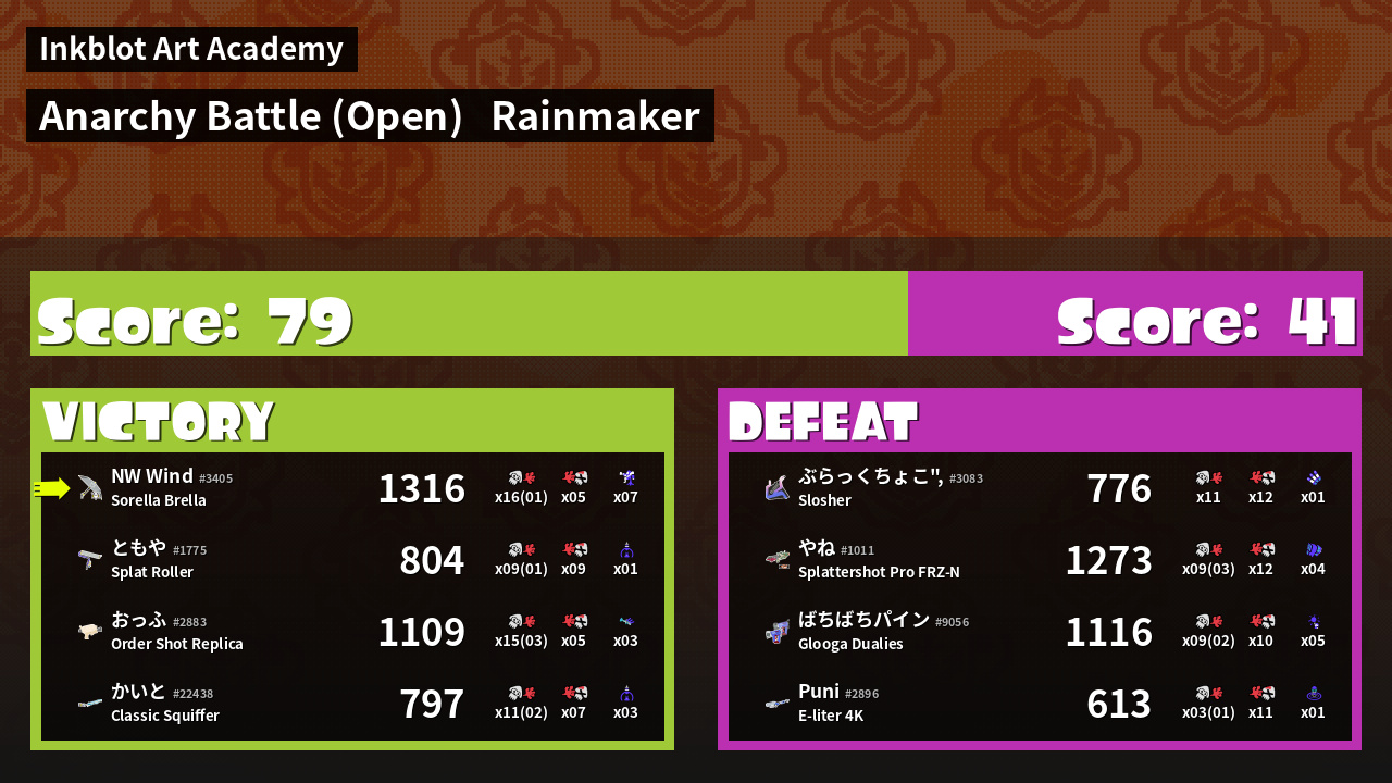 Name | Weapon | Inked | ![]() |