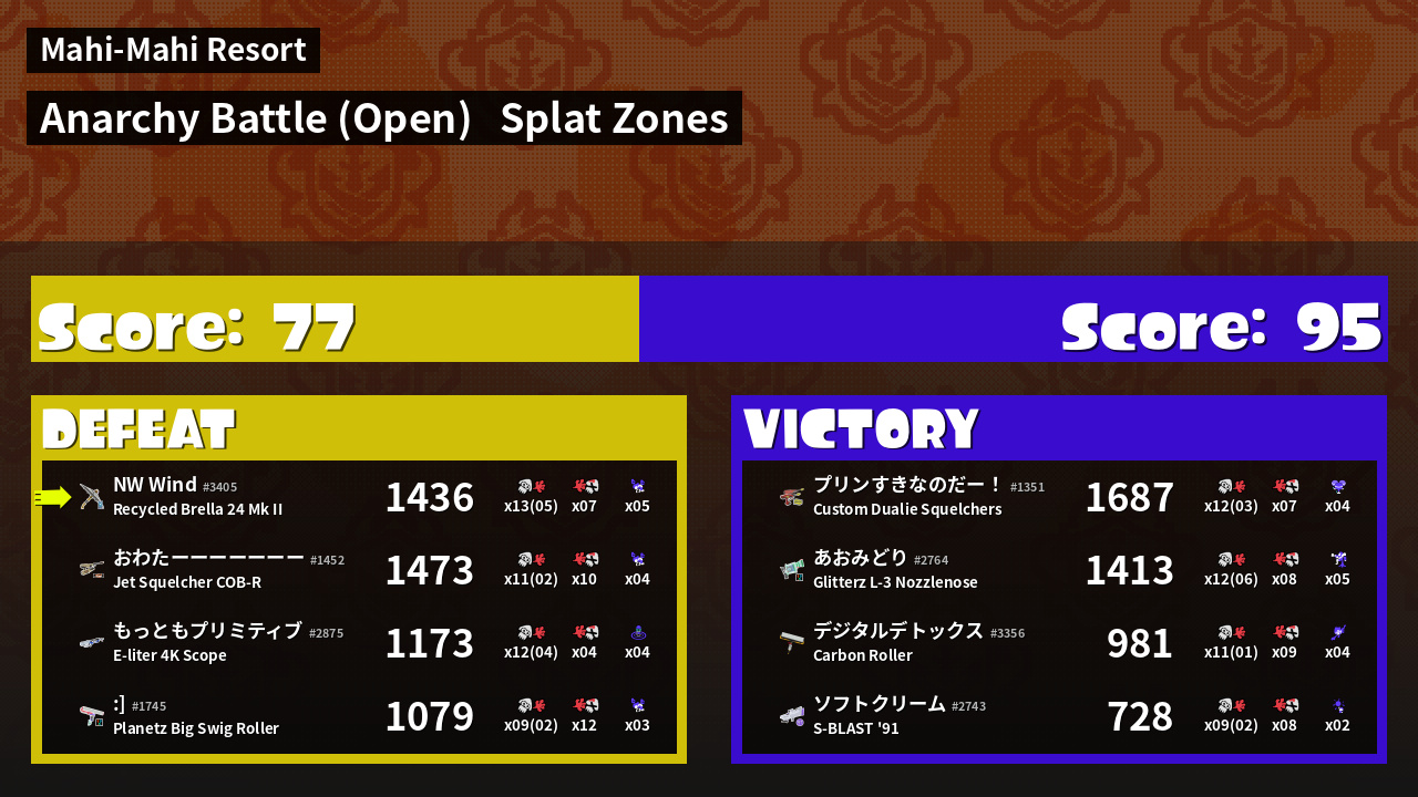| Mode | Splat Zones - Anarchy Battle (Open) | ||