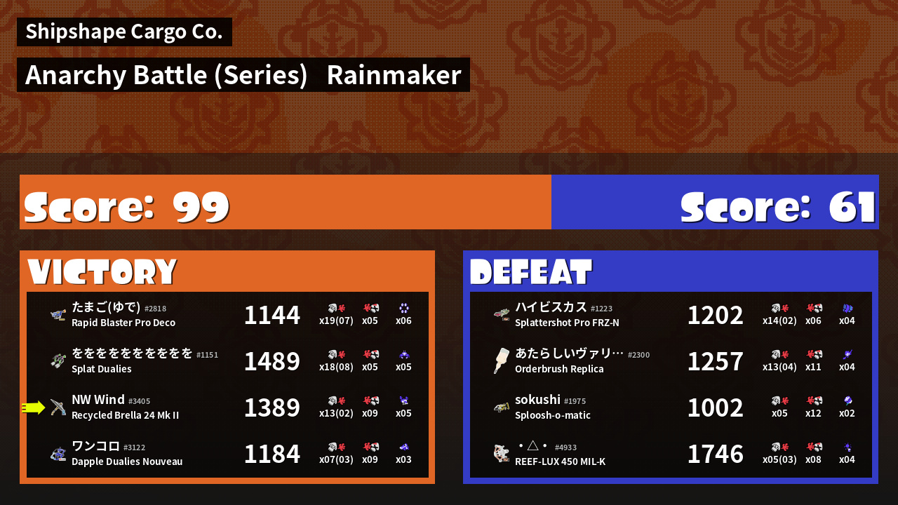 | Mode | Rainmaker - Anarchy Battle (Series) | ||
