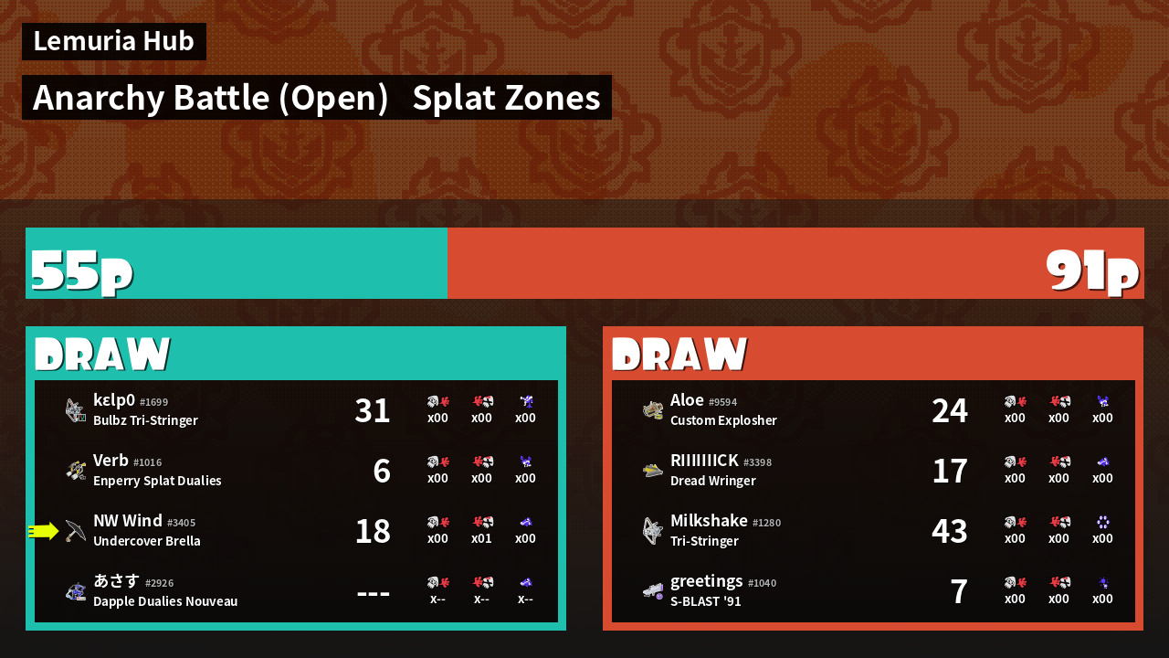 | Mode | Splat Zones - Anarchy Battle (Open) | ||
