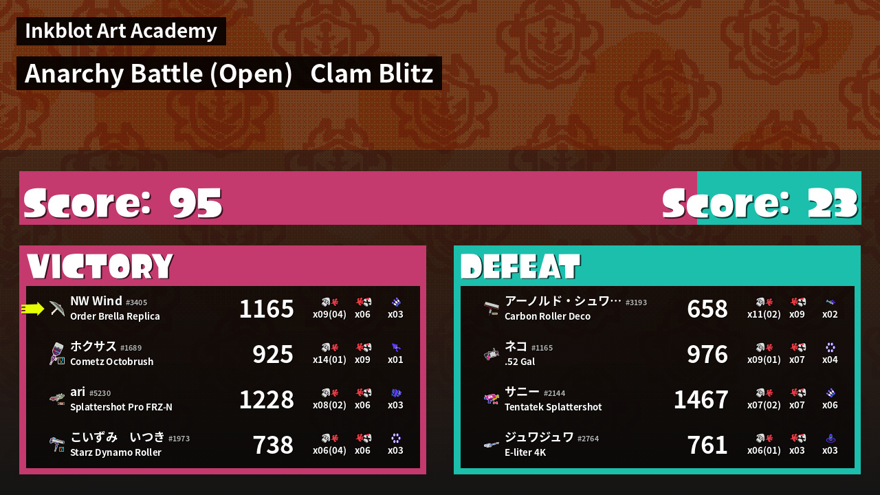 | Mode | Clam Blitz - Anarchy Battle (Open) | ||