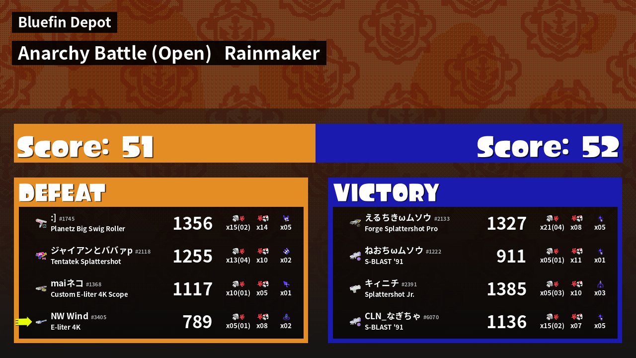 | Mode | Rainmaker - Anarchy Battle (Open) | ||