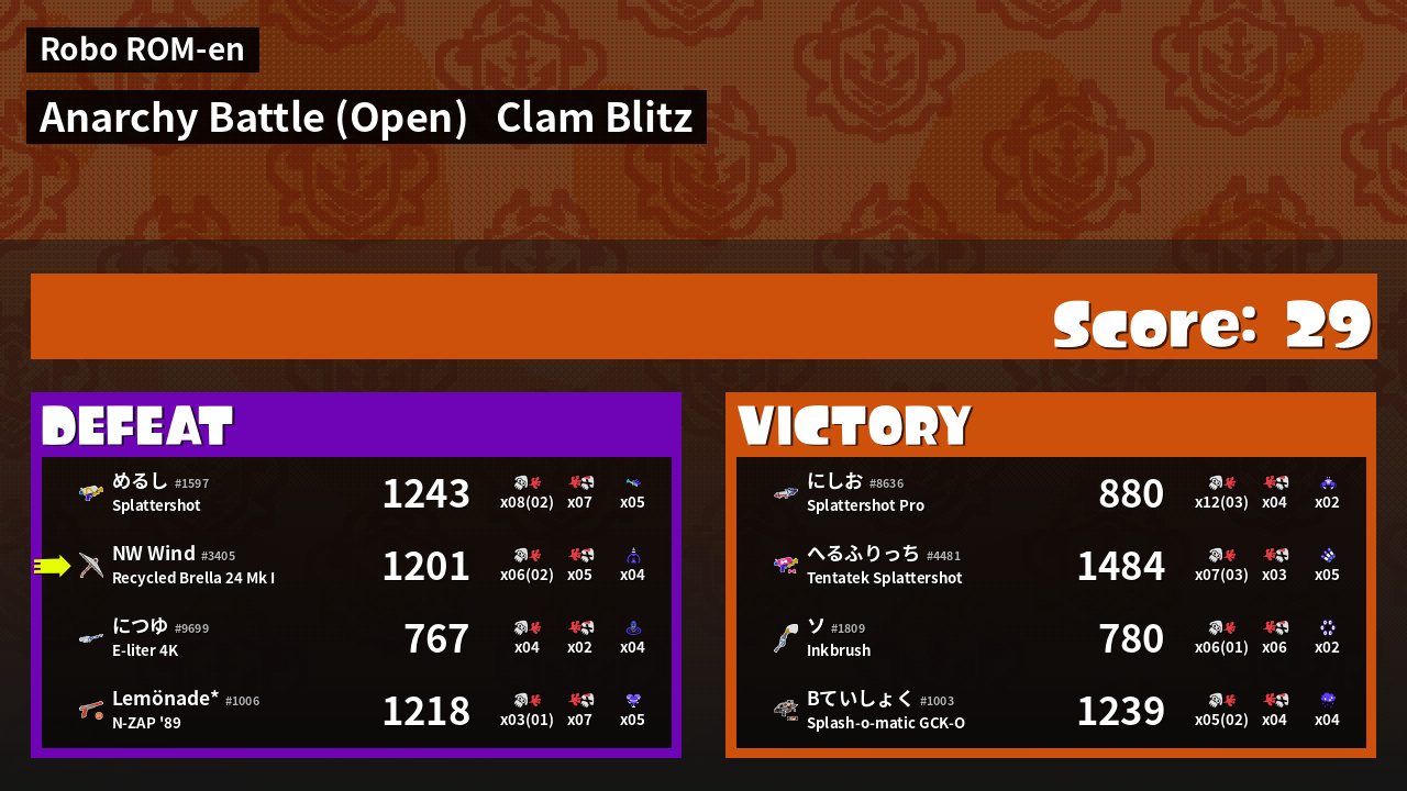 | Mode | Clam Blitz - Anarchy Battle (Open) | ||
