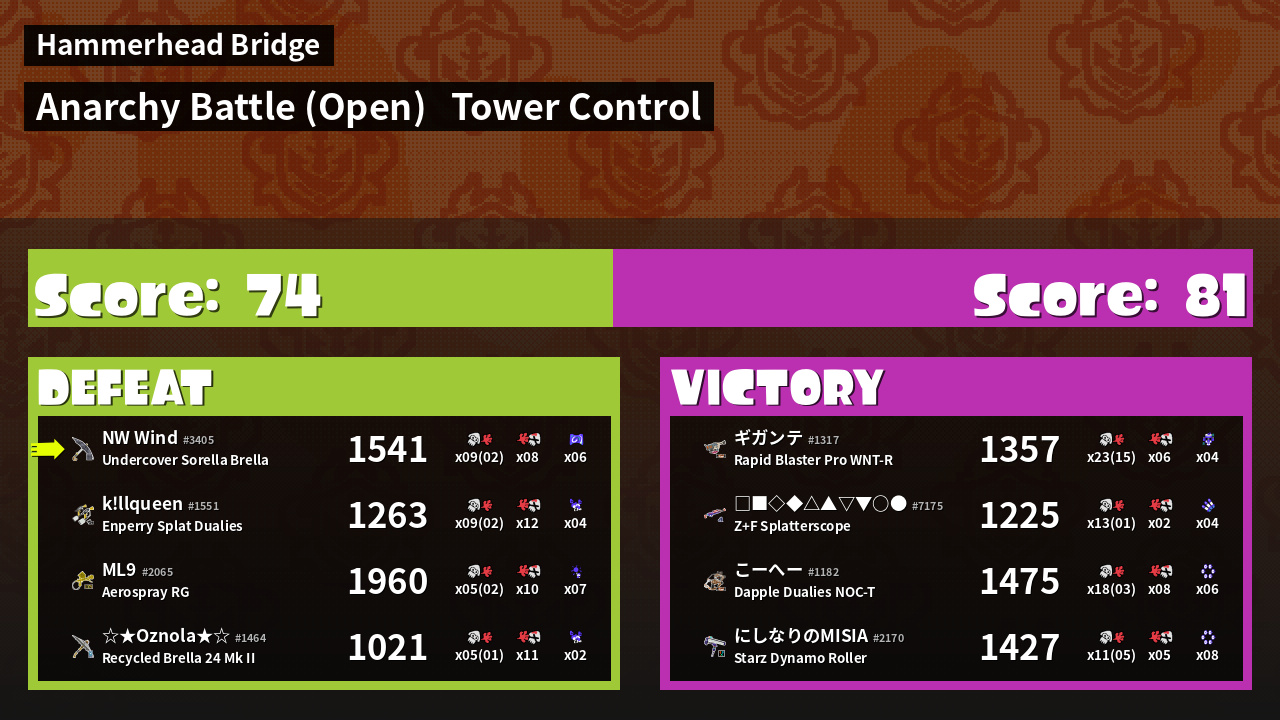 | Mode | Tower Control - Anarchy Battle (Open) | ||