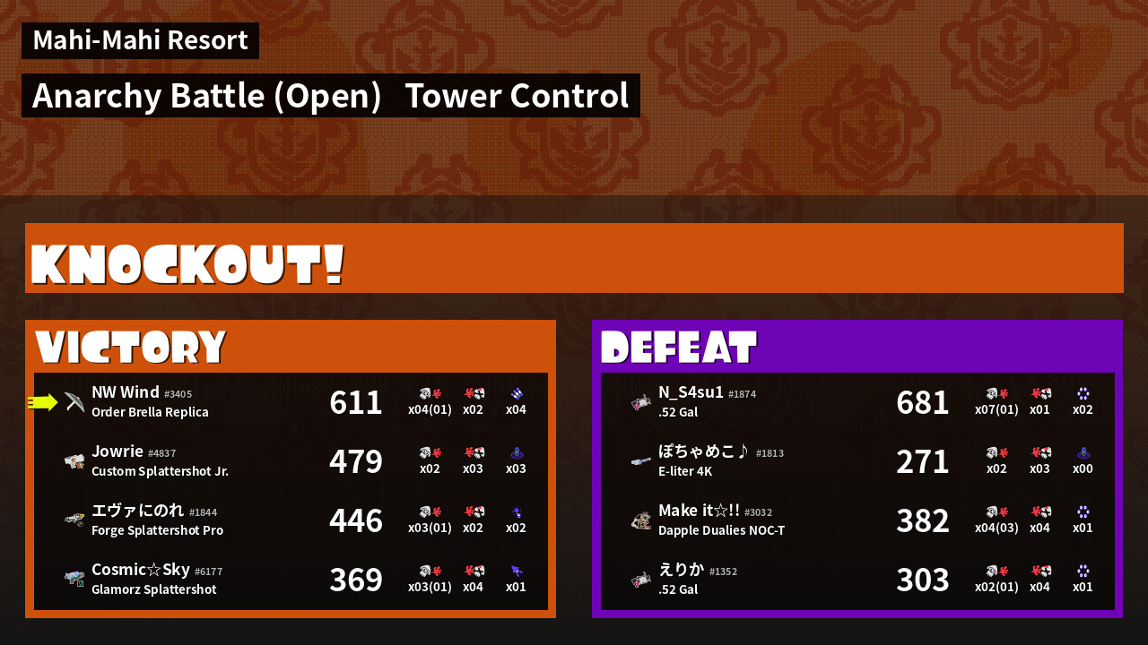 | Mode | Tower Control - Anarchy Battle (Open) | ||