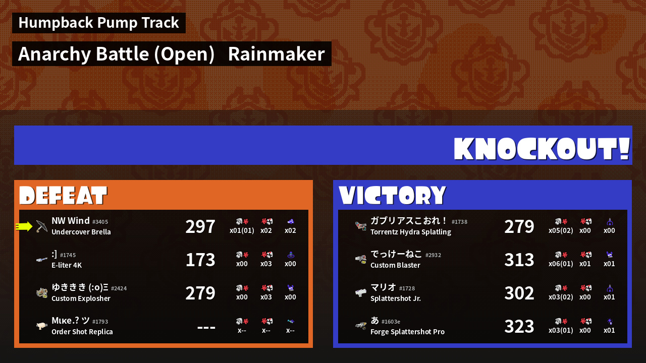 | Mode | Rainmaker - Anarchy Battle (Open) | ||