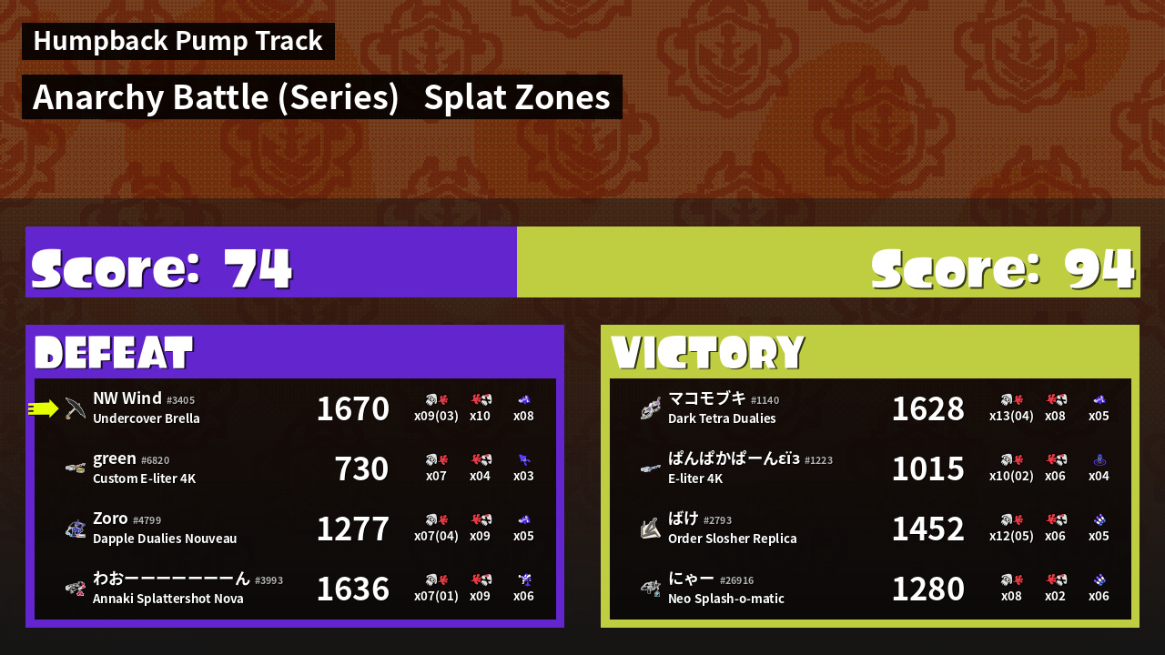 | Mode | Splat Zones - Anarchy Battle (Series) | ||
