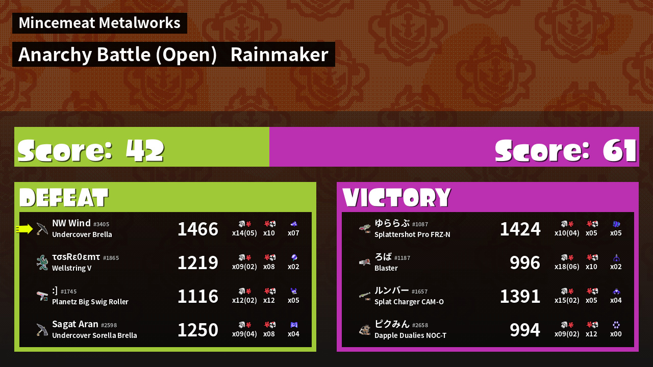 | Mode | Rainmaker - Anarchy Battle (Open) | ||