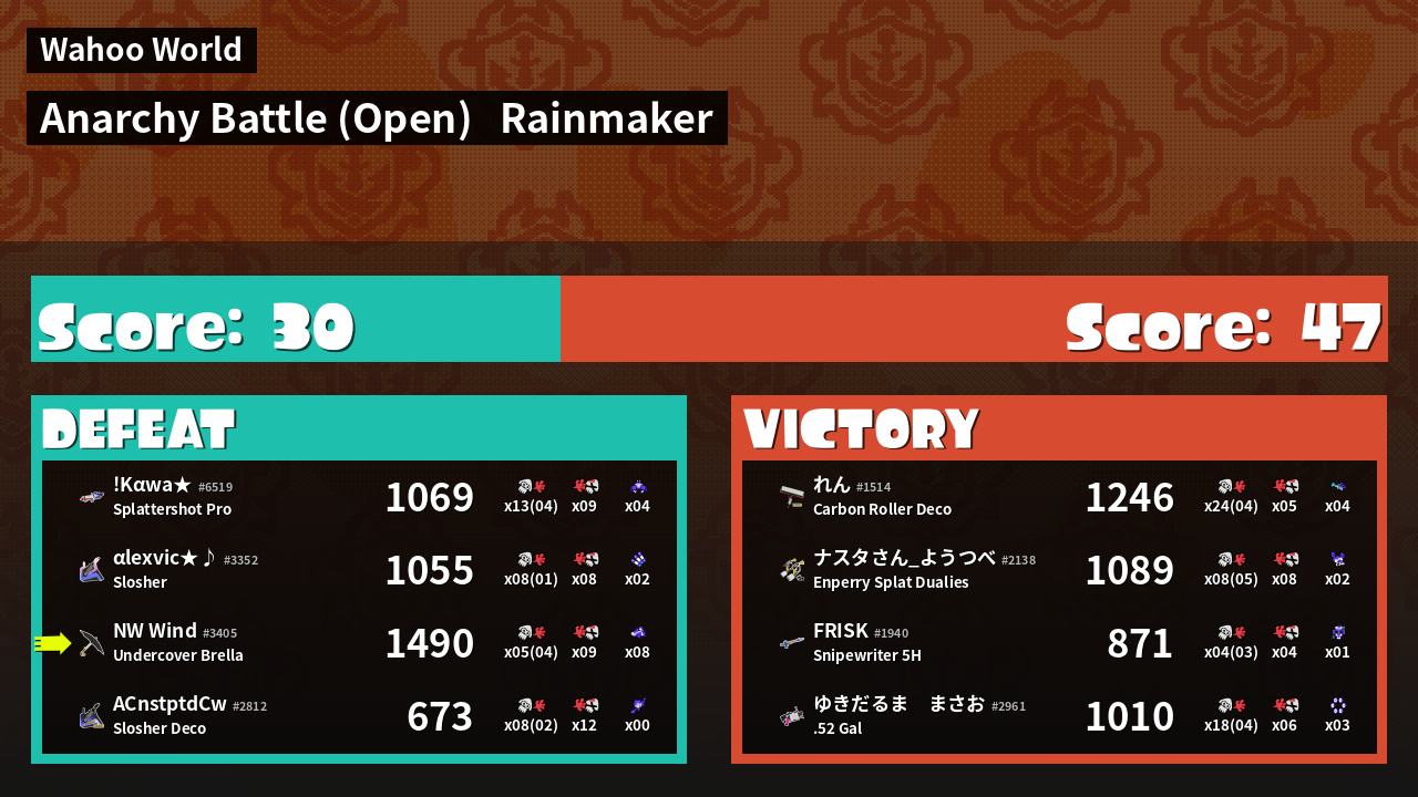 | Mode | Rainmaker - Anarchy Battle (Open) | ||