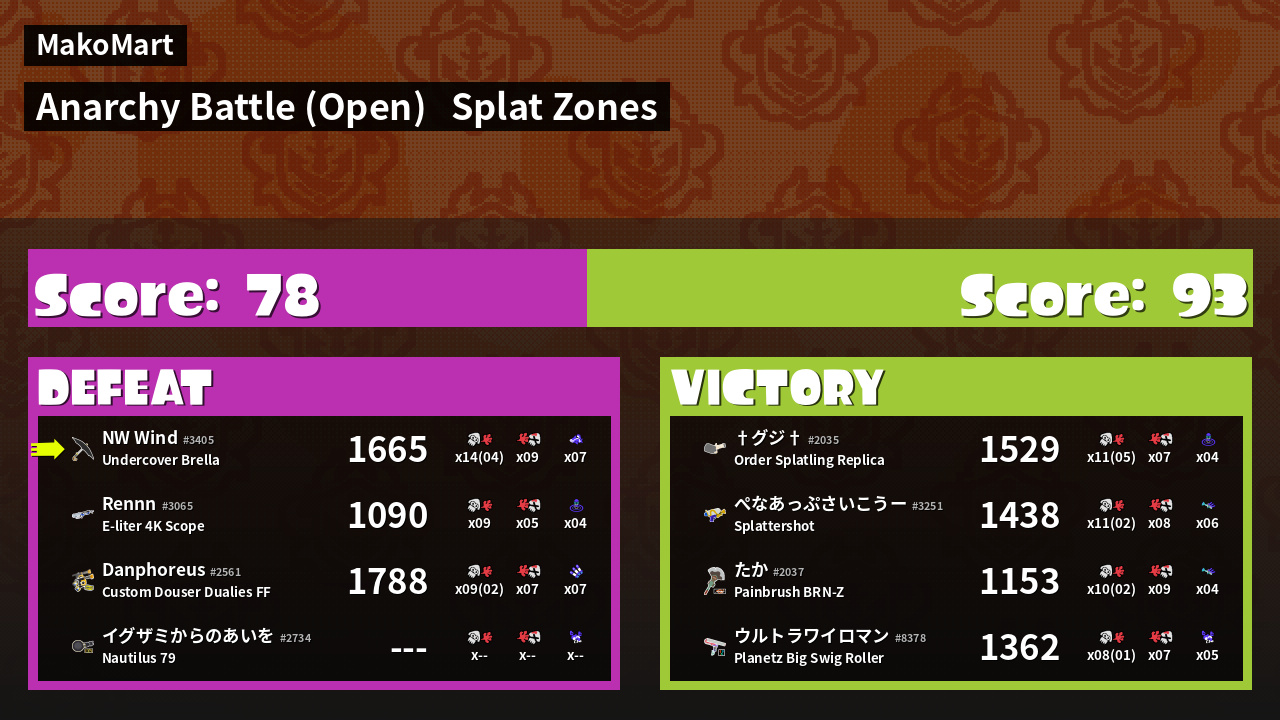 | Mode | Splat Zones - Anarchy Battle (Open) | ||