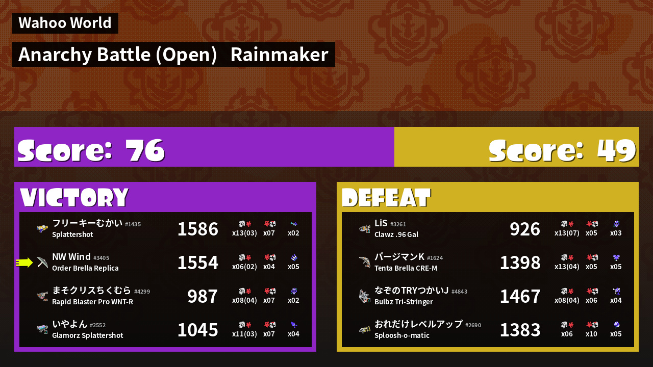 | Mode | Rainmaker - Anarchy Battle (Open) | ||