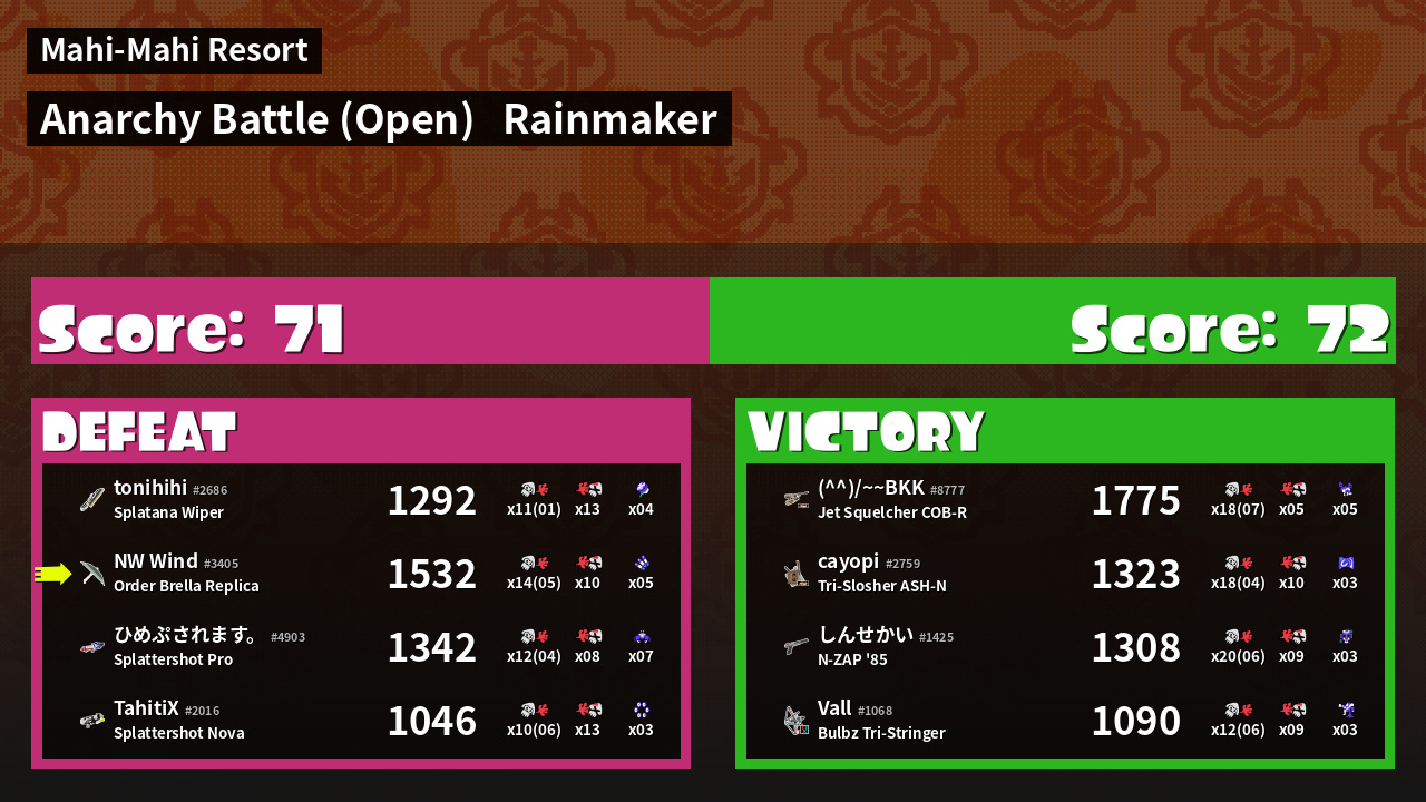| Mode | Rainmaker - Anarchy Battle (Open) | ||