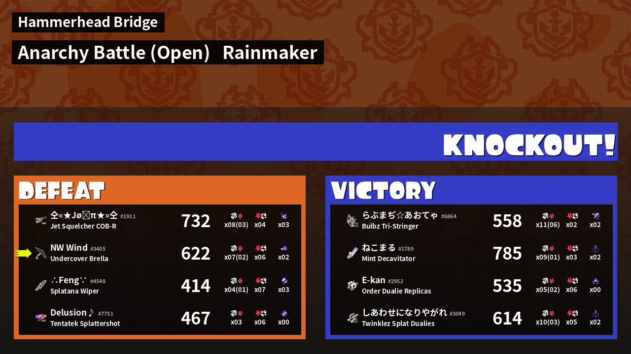 | Mode | Rainmaker - Anarchy Battle (Open) | ||