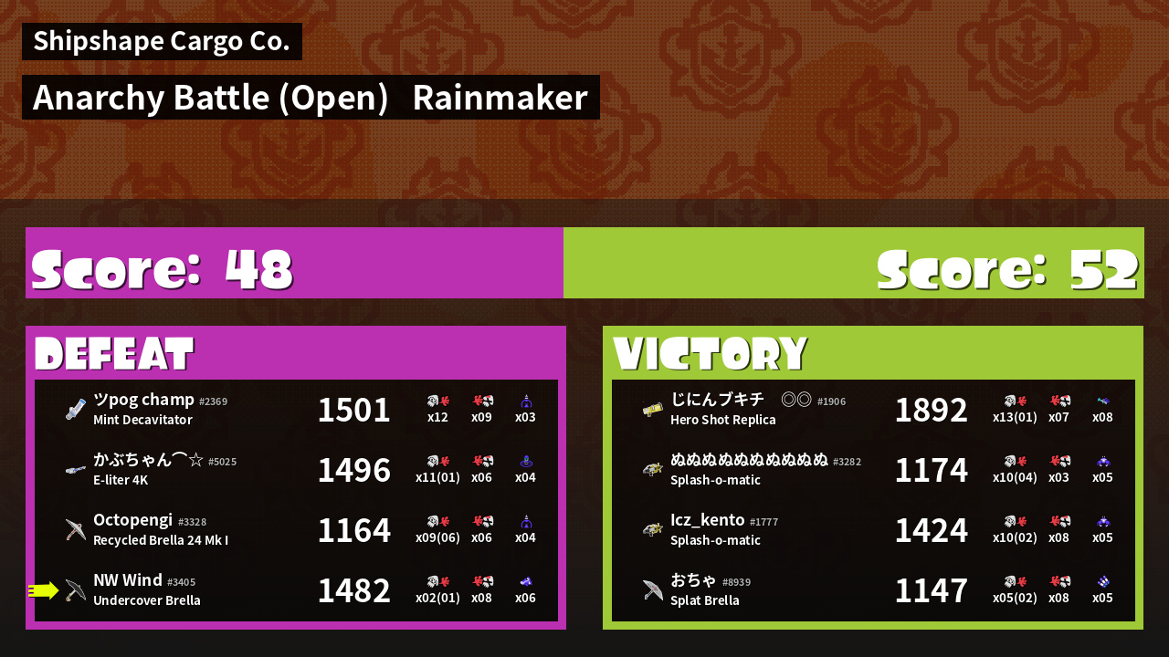 | Mode | Rainmaker - Anarchy Battle (Open) | ||