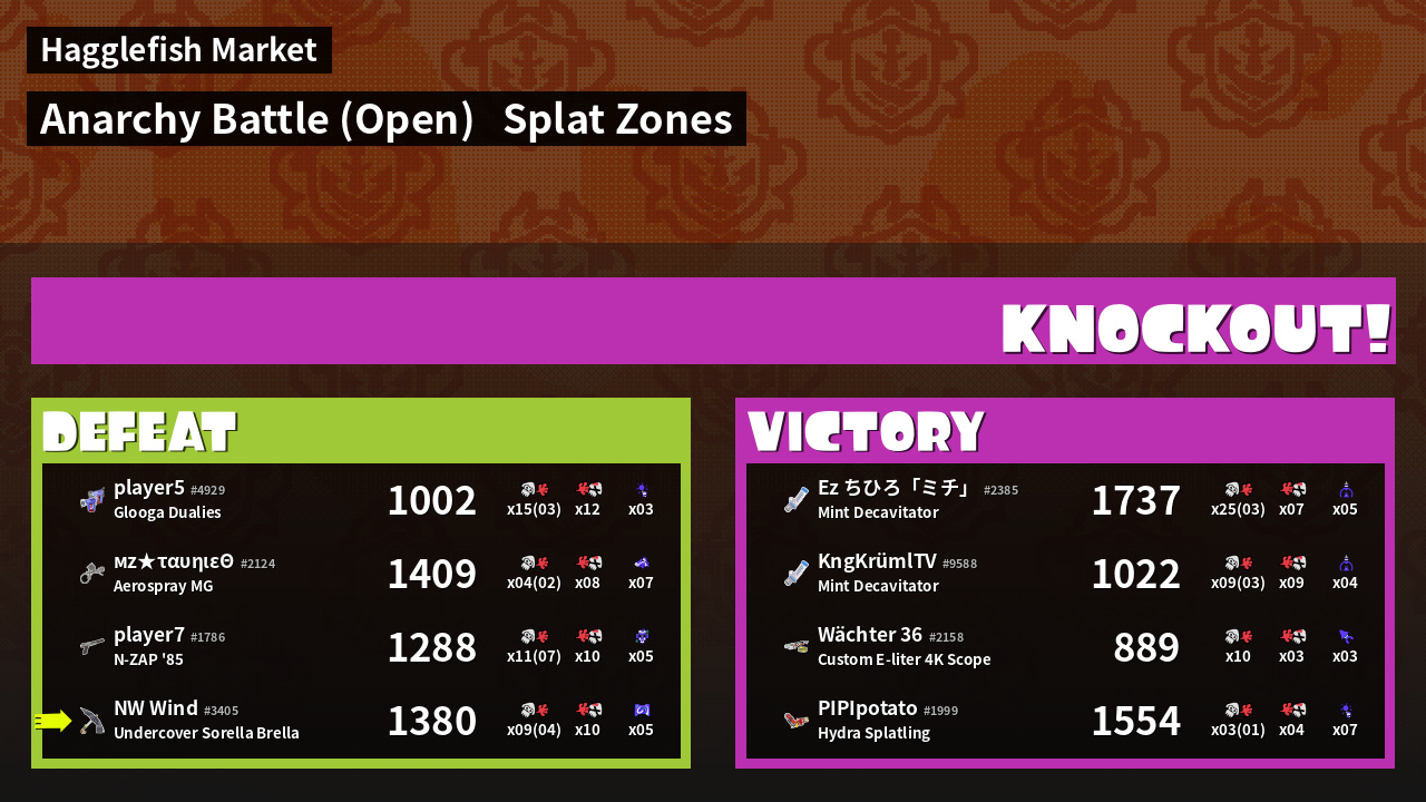 | Mode | Splat Zones - Anarchy Battle (Open) | ||