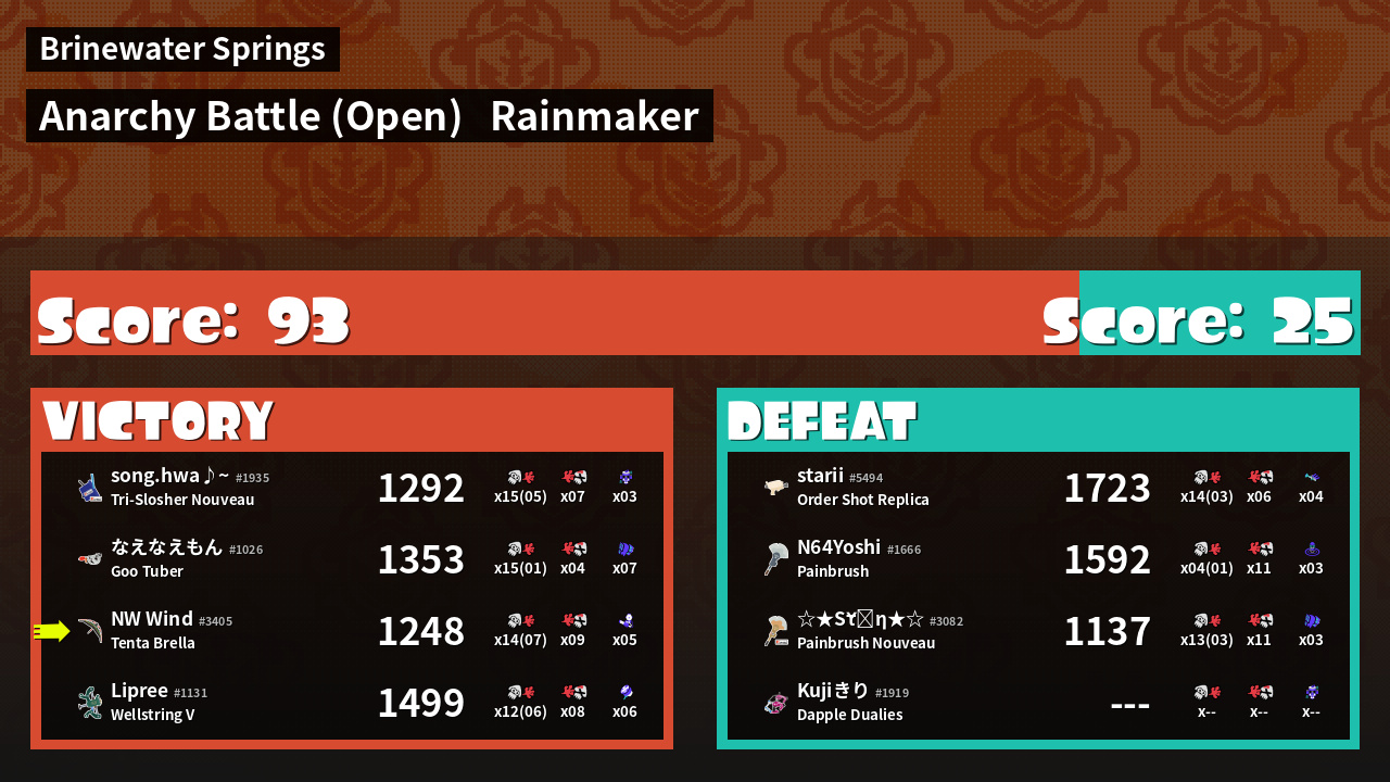 | Mode | Rainmaker - Anarchy Battle (Open) | ||