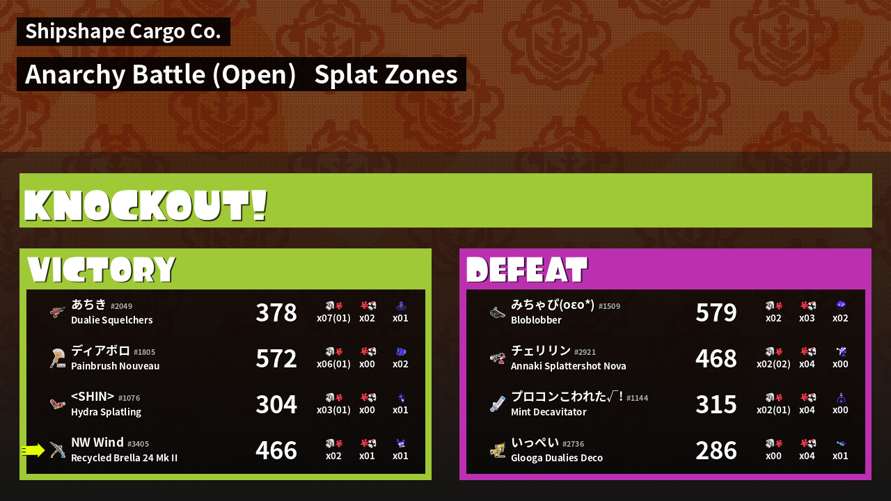 | Mode | Splat Zones - Anarchy Battle (Open) | ||