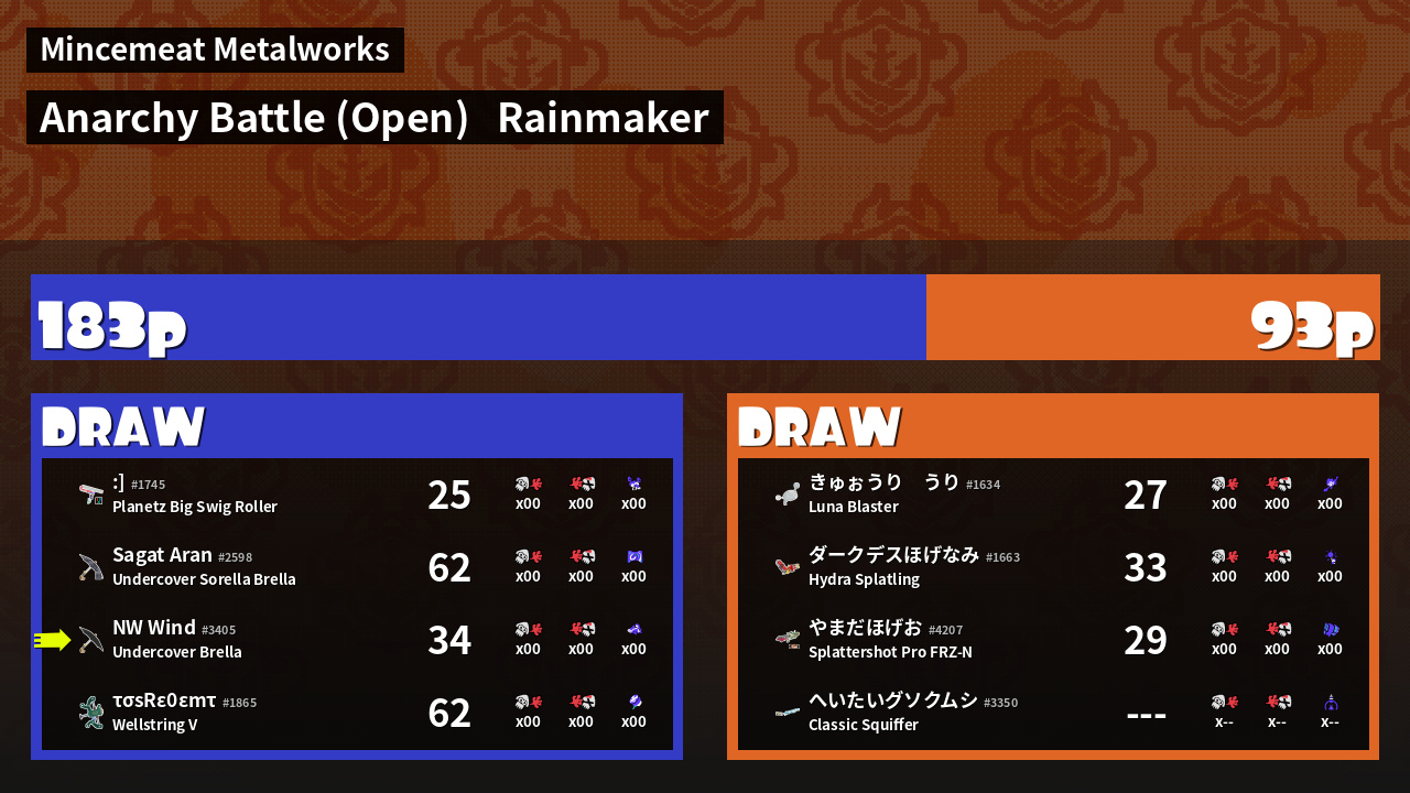 | Mode | Rainmaker - Anarchy Battle (Open) | ||
