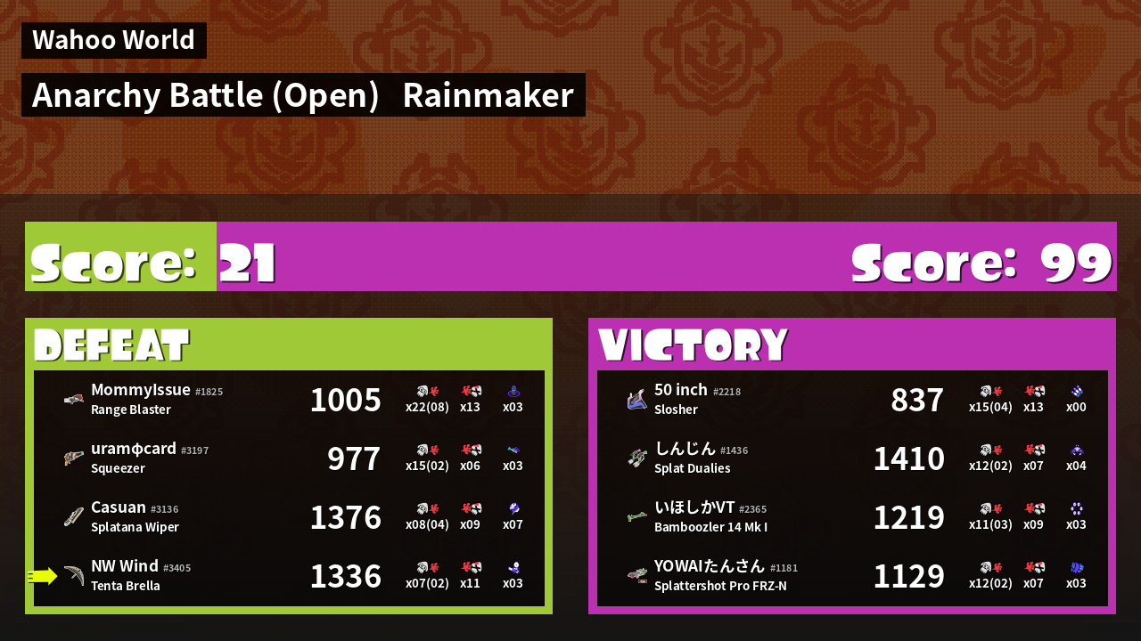 | Mode | Rainmaker - Anarchy Battle (Open) | ||