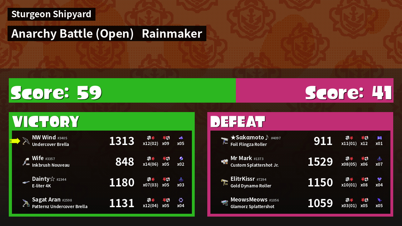 | Mode | Rainmaker - Anarchy Battle (Open) | ||