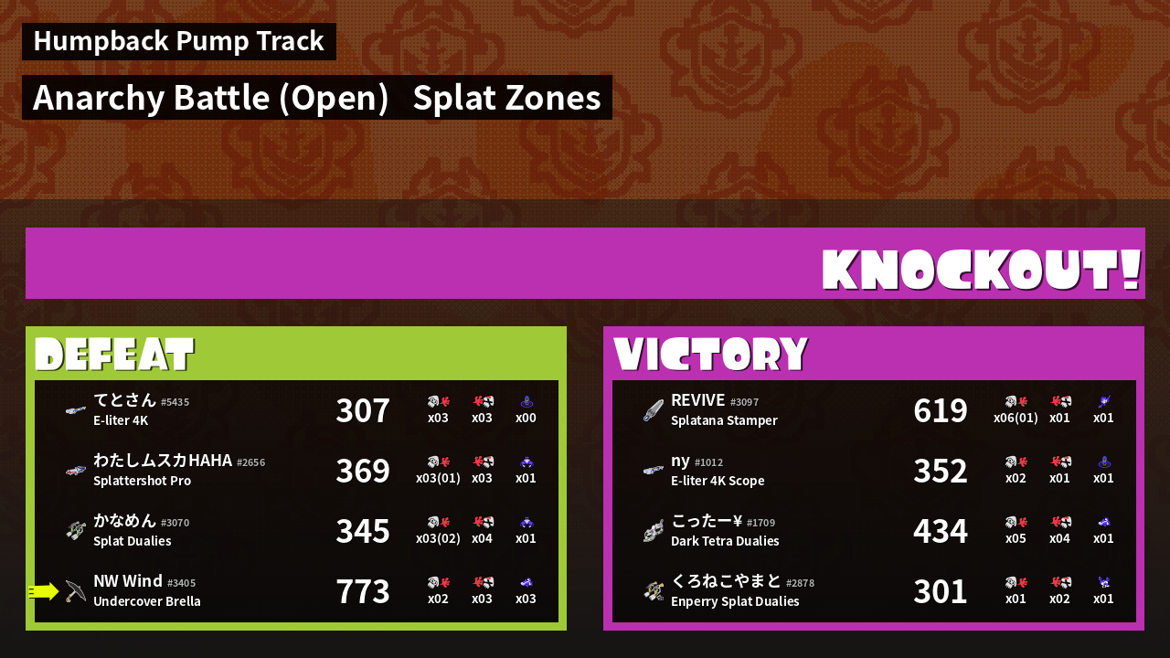 | Mode | Splat Zones - Anarchy Battle (Open) | ||
