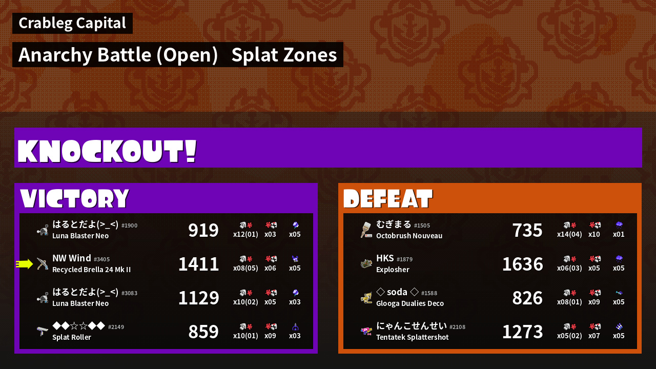 | Mode | Splat Zones - Anarchy Battle (Open) | ||