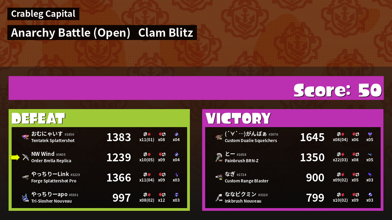Results of NorthWestWind's Battle