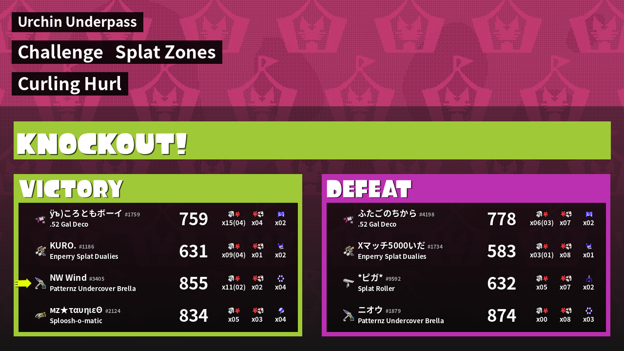 | Weapon | Patternz Undercover Brella ( Curling Bomb / Killer Wail 5.1) | ||