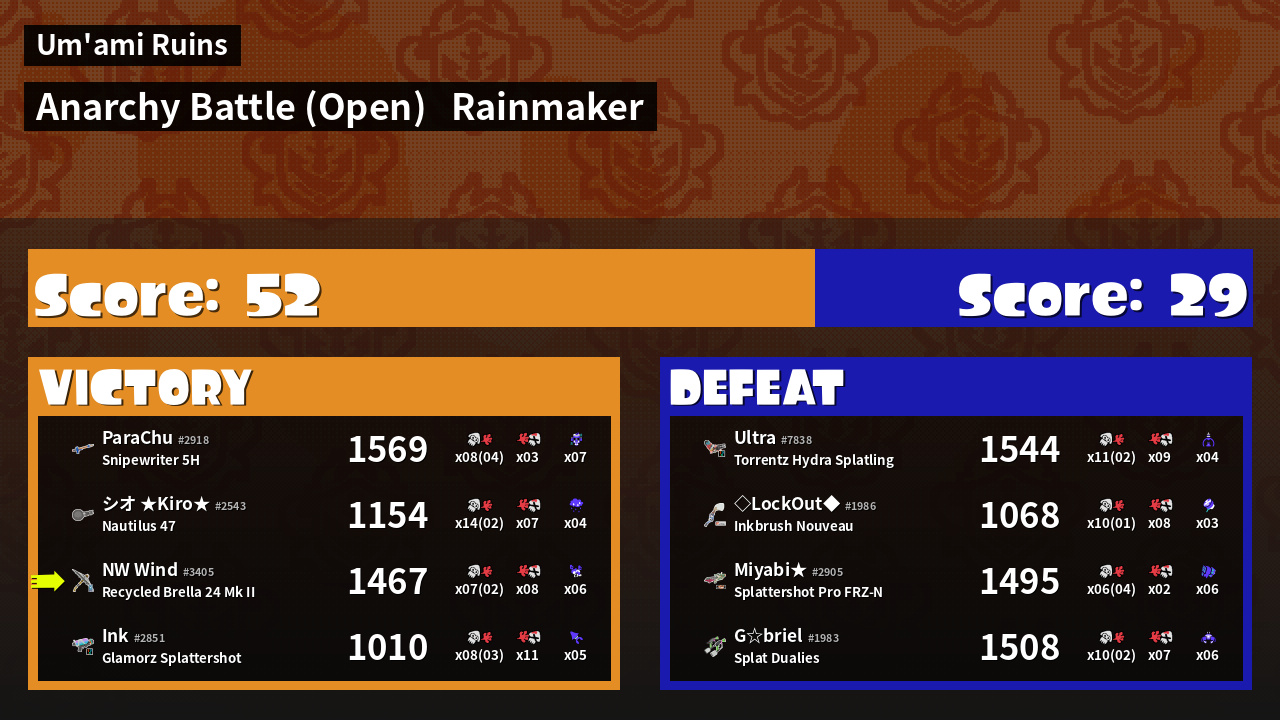 | Mode | Rainmaker - Anarchy Battle (Open) | ||