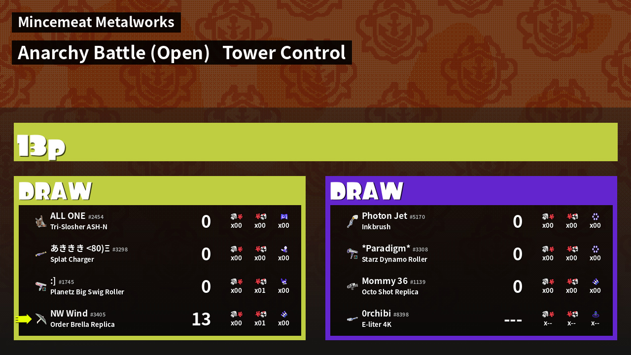 | Mode | Tower Control - Anarchy Battle (Open) | ||