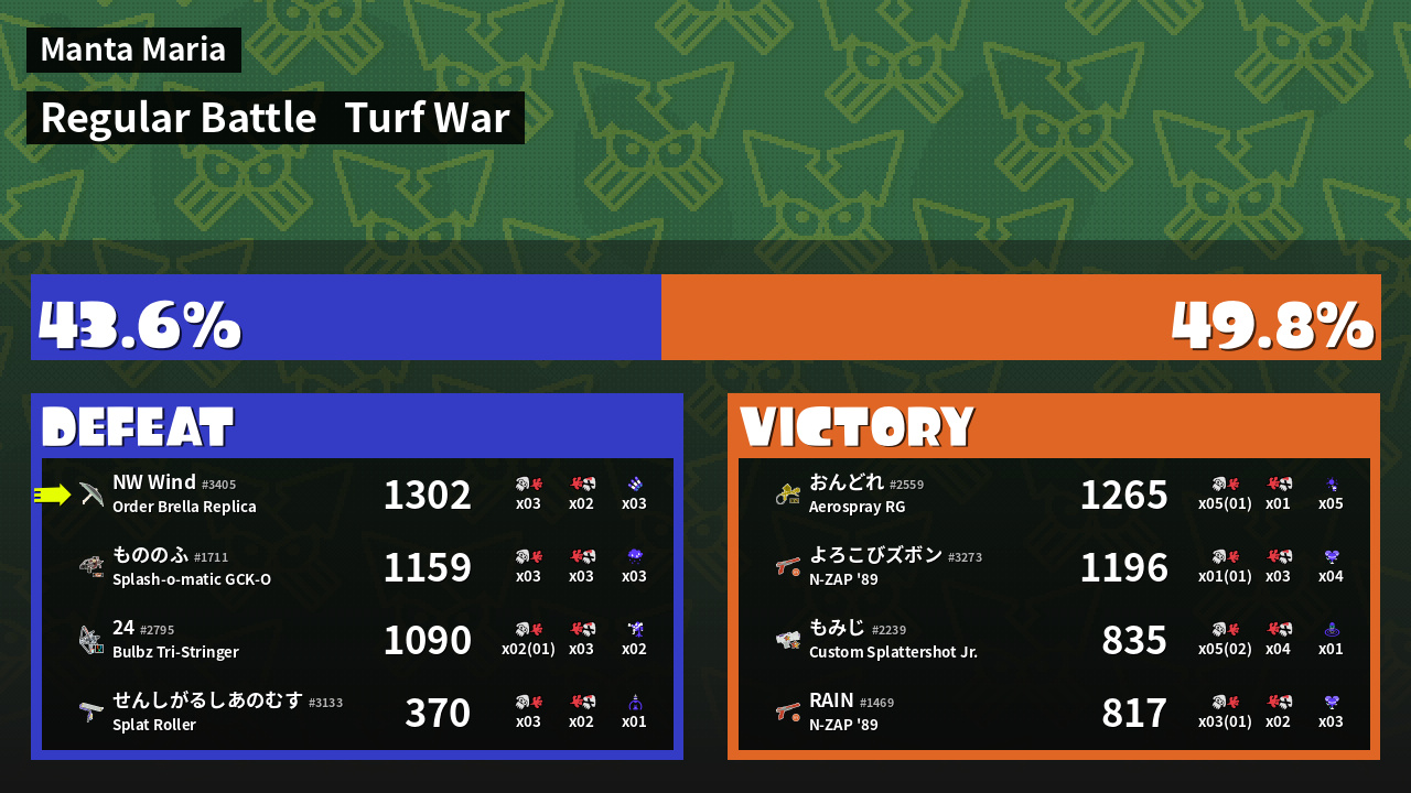 | Mode | Turf War - Regular Battle | ||