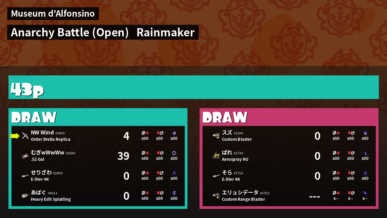 | Mode | Rainmaker - Anarchy Battle (Open) | ||