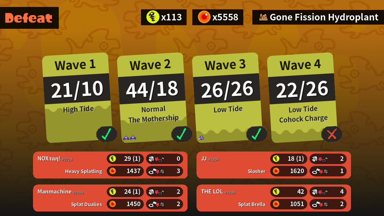 | Special | Wave Breaker (0) | Triple Inkstrike (0) | Reefslider (1) | Crab Tank (2) |