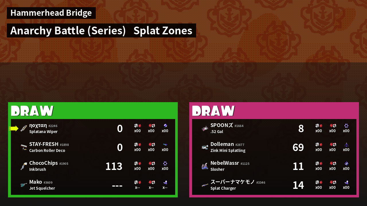 | Mode | Splat Zones - Anarchy Battle (Series) | ||