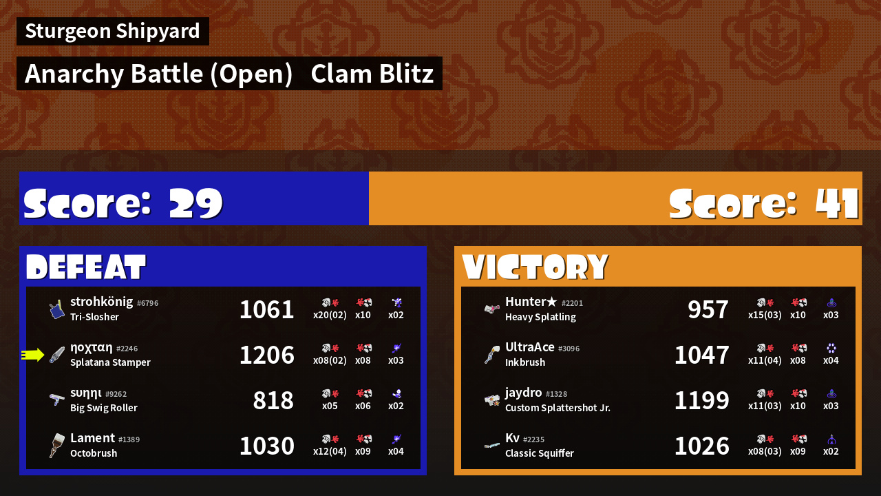 | Mode | Clam Blitz - Anarchy Battle (Open) | ||