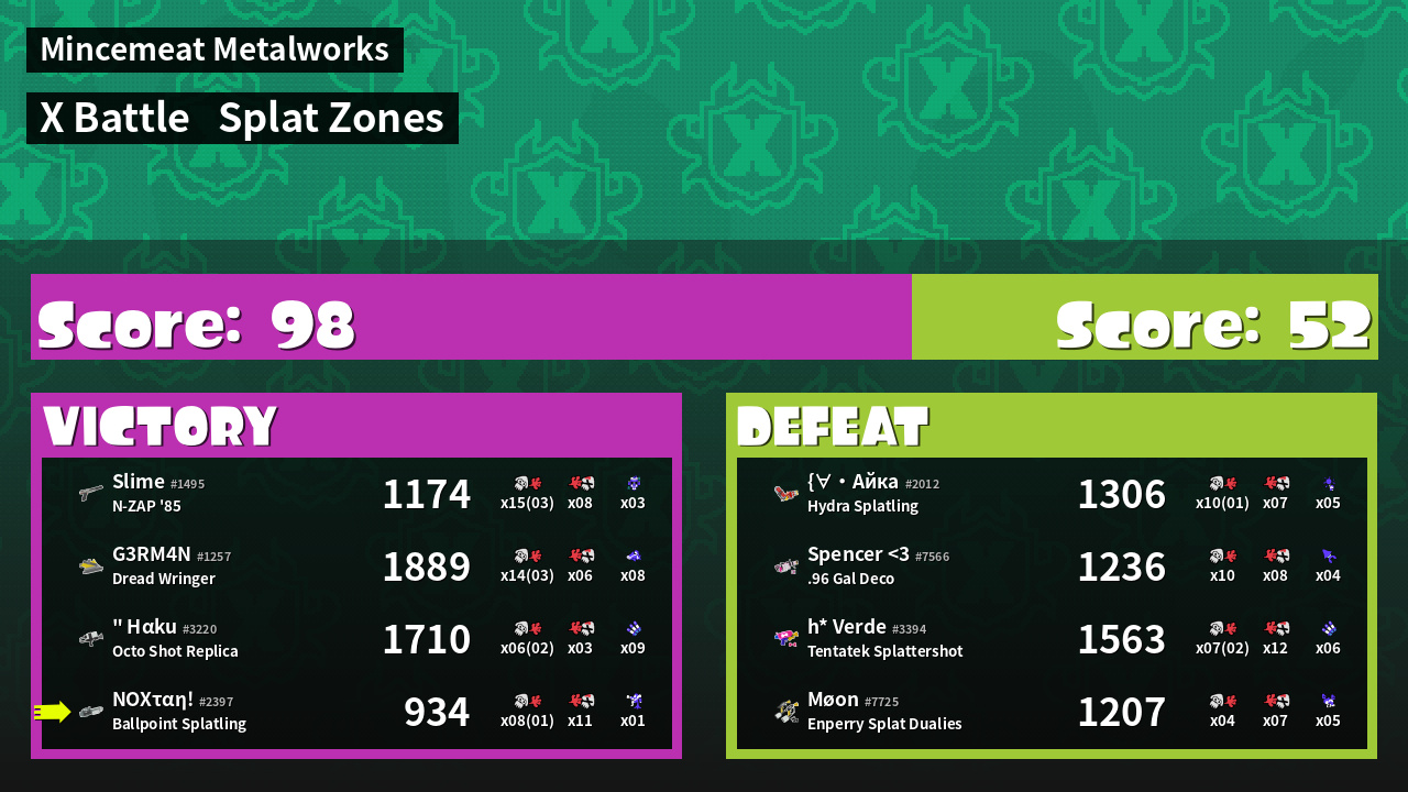 | Medals | #1 Inkjet User #2 Splat Zone Guard | ||
