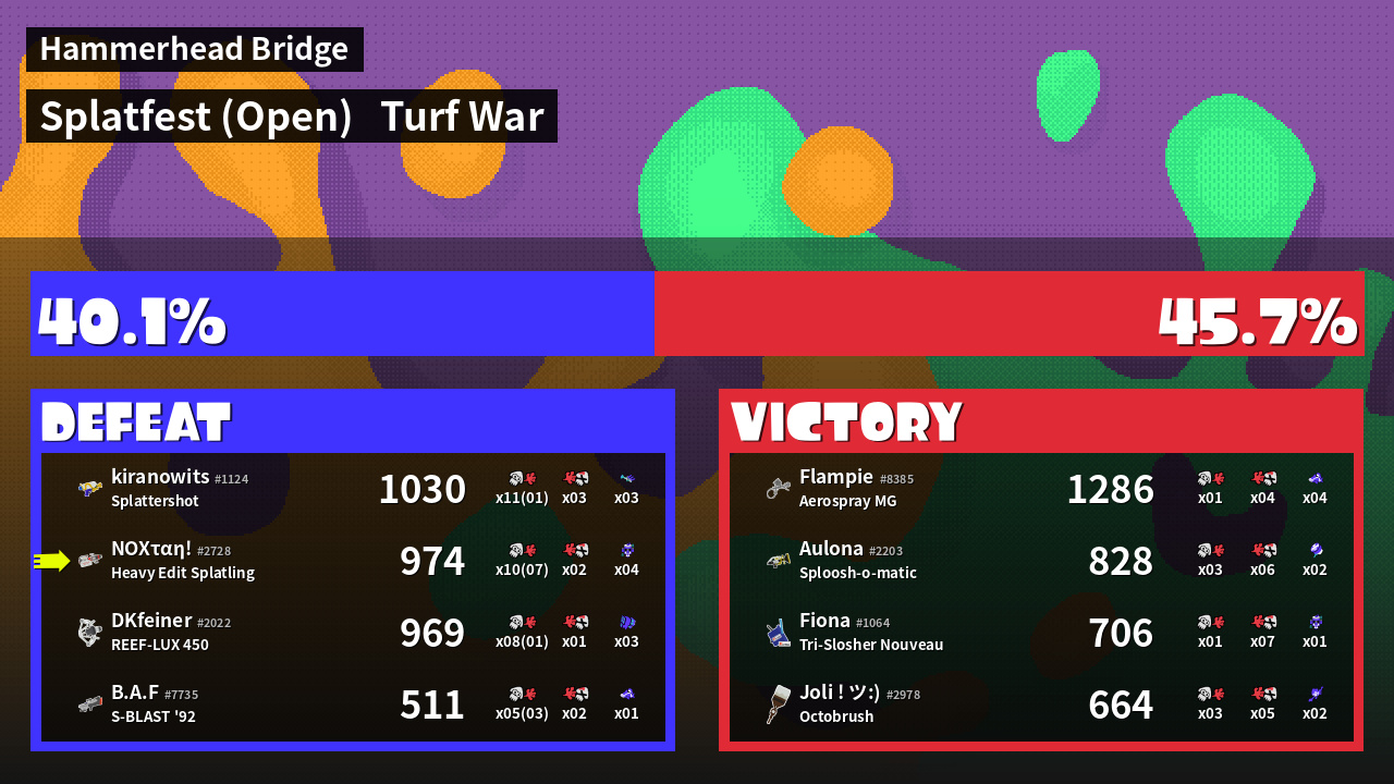 | Medals | #1 Enemy-Base Inker #1 Super Jump Spot #1 Splat Assister | ||