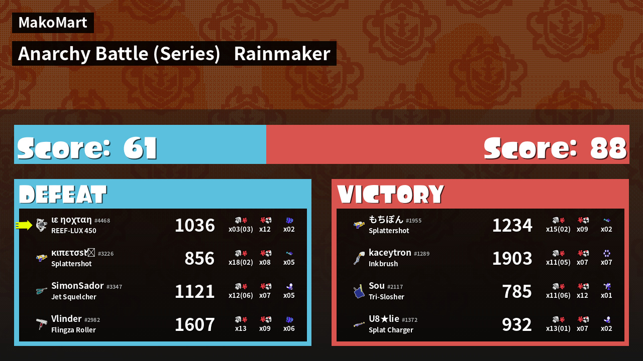 | Mode | Rainmaker - Anarchy Battle (Series) | ||