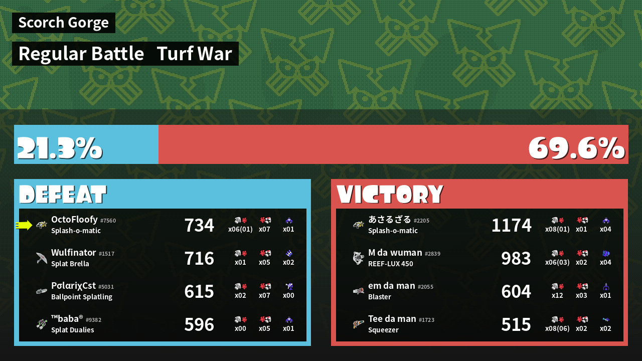 | Mode | Turf War - Regular Battle | ||