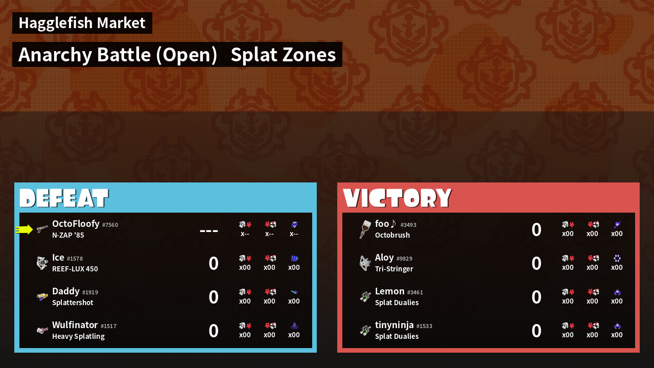 | Mode | Splat Zones - Anarchy Battle (Open) | ||