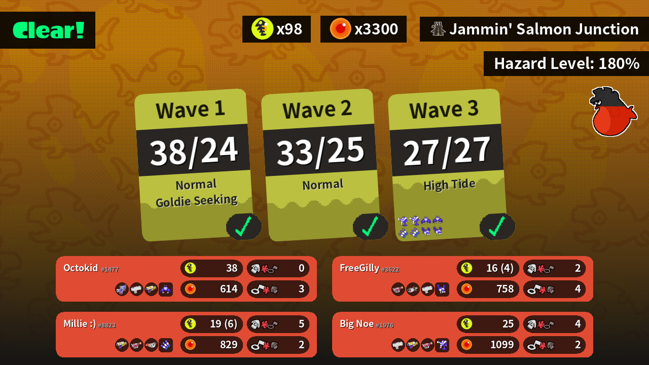 | Weapons | Glooga Dualies Splattershot Jr. Splattershot | Splattershot Jr. Splattershot Rapid Blaster Pro | Splattershot Rapid Blaster Pro Goo Tuber | Rapid Blaster Pro .96 Gal Splattershot Jr. |