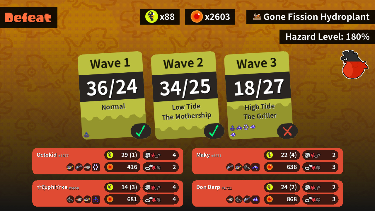 | Weapons | Mini Splatling H-3 Nozzlenose Goo Tuber | Goo Tuber Bloblobber H-3 Nozzlenose | H-3 Nozzlenose Mini Splatling Bloblobber | Bloblobber Goo Tuber Mini Splatling |