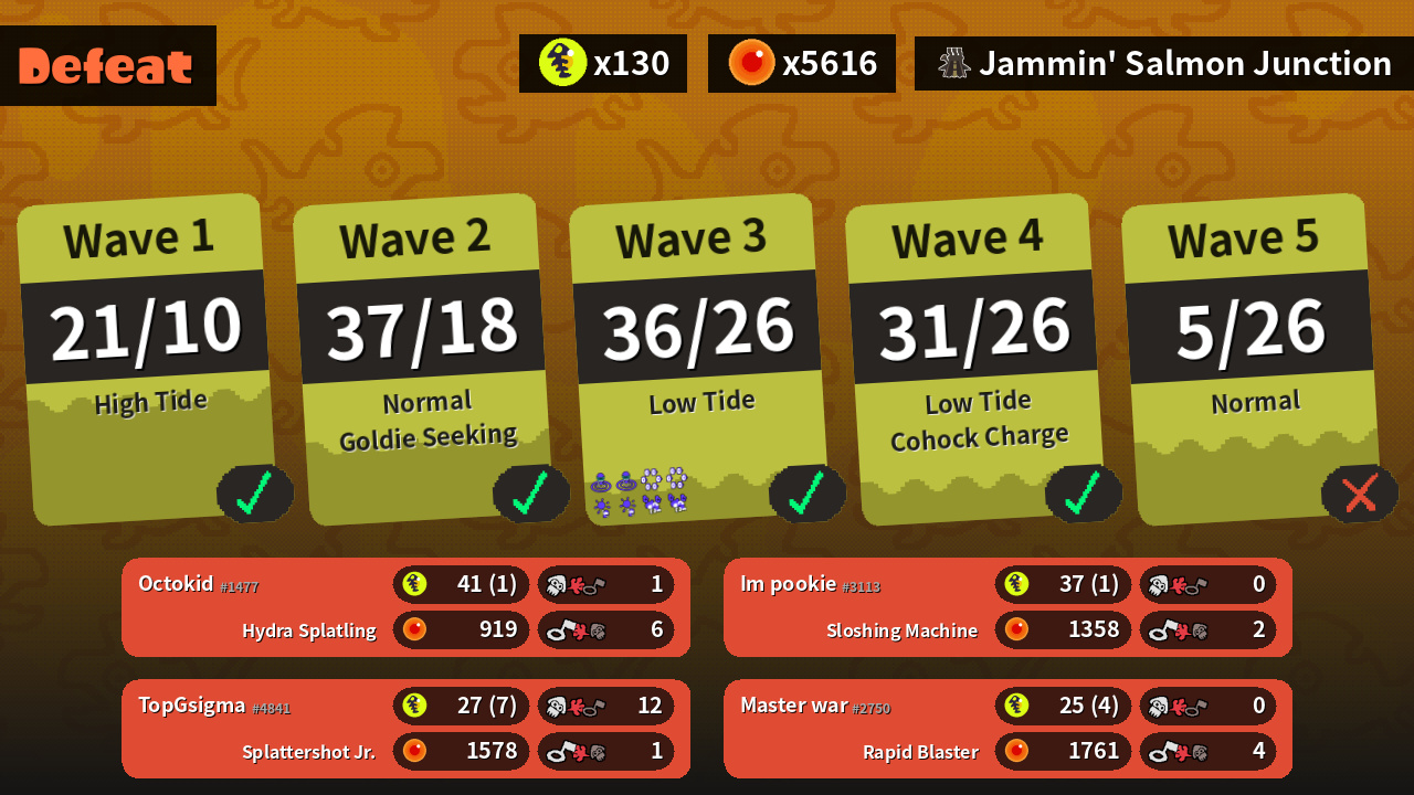 | Weapons | Hydra Splatling | Sloshing Machine | Splattershot Jr. | Rapid Blaster |