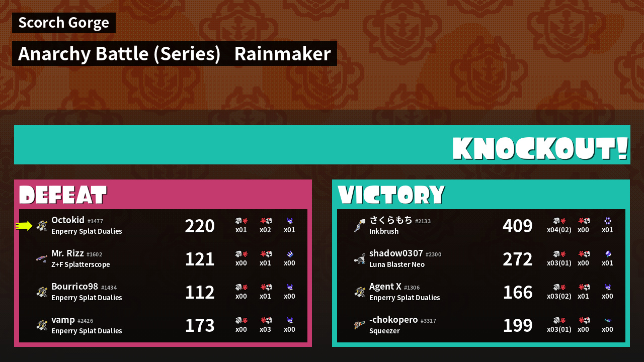 | Weapon | Enperry Splat Dualies ( Curling Bomb / Triple Splashdown) | ||