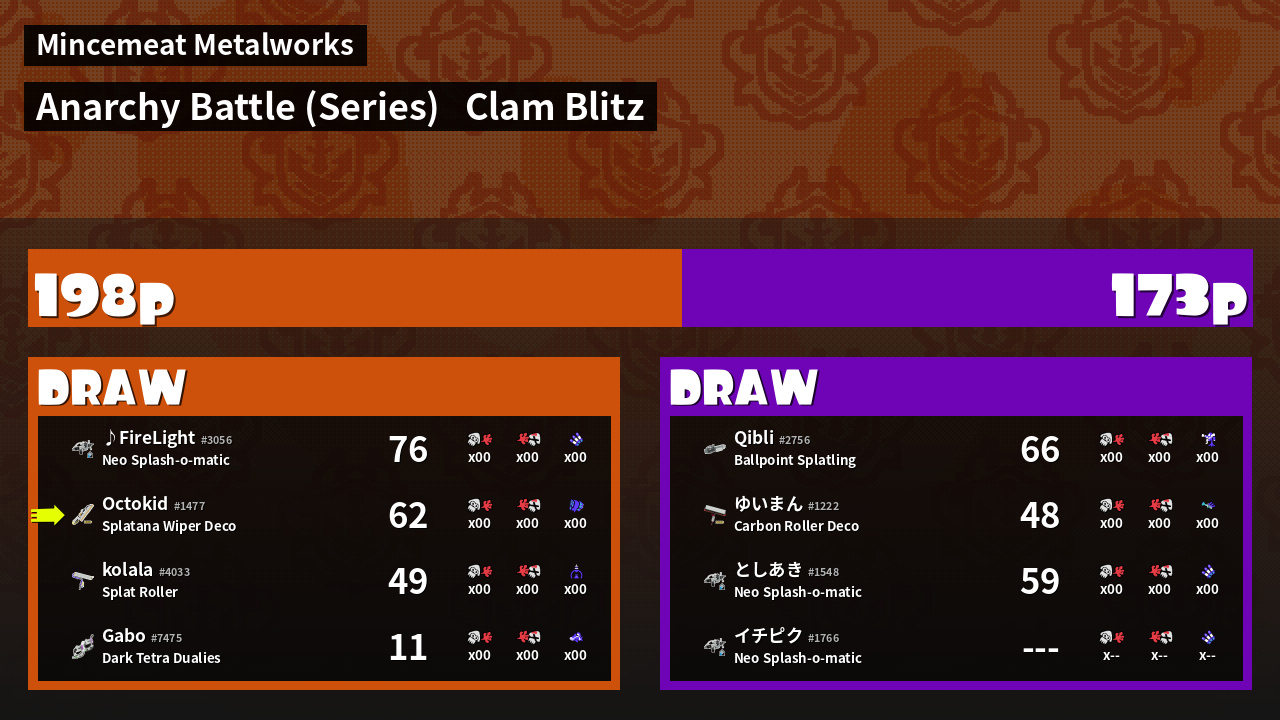 | Mode | Clam Blitz - Anarchy Battle (Series) | ||