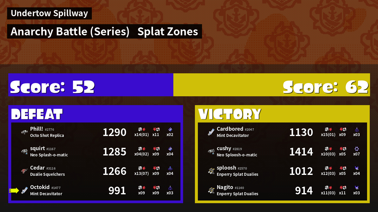| Mode | Splat Zones - Anarchy Battle (Series) | ||