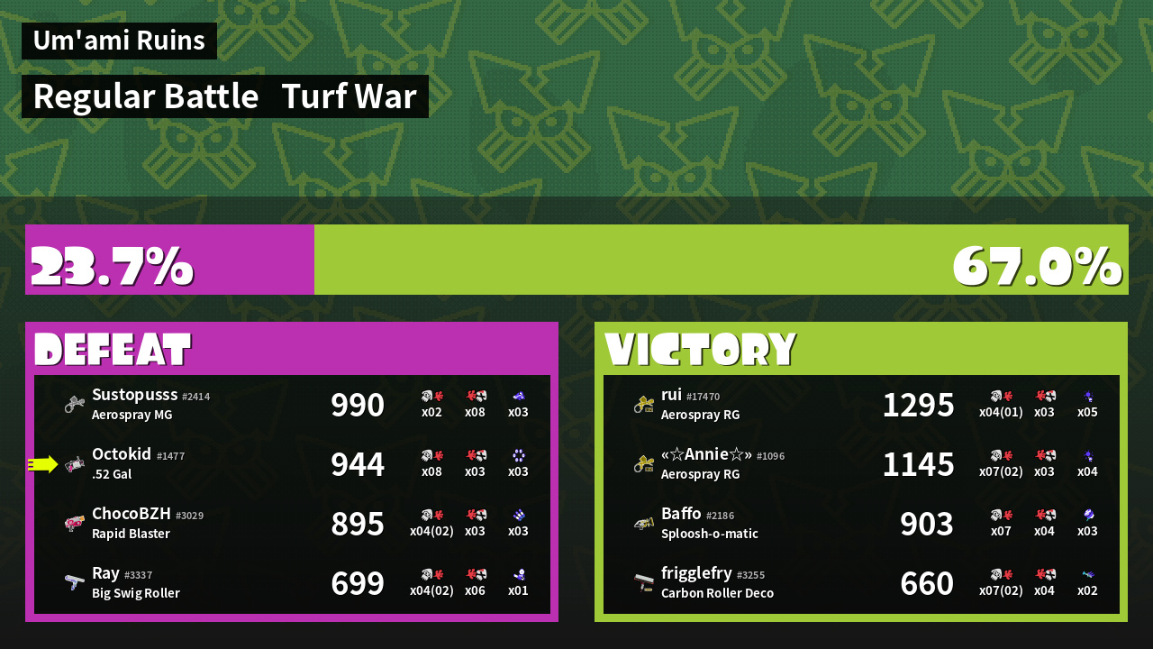 | Mode | Turf War - Regular Battle | ||