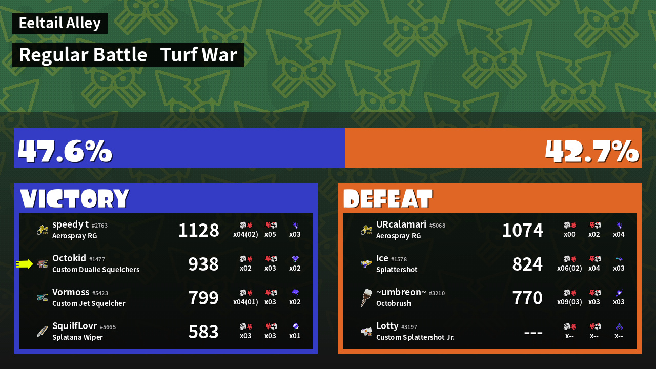 | Mode | Turf War - Regular Battle | ||