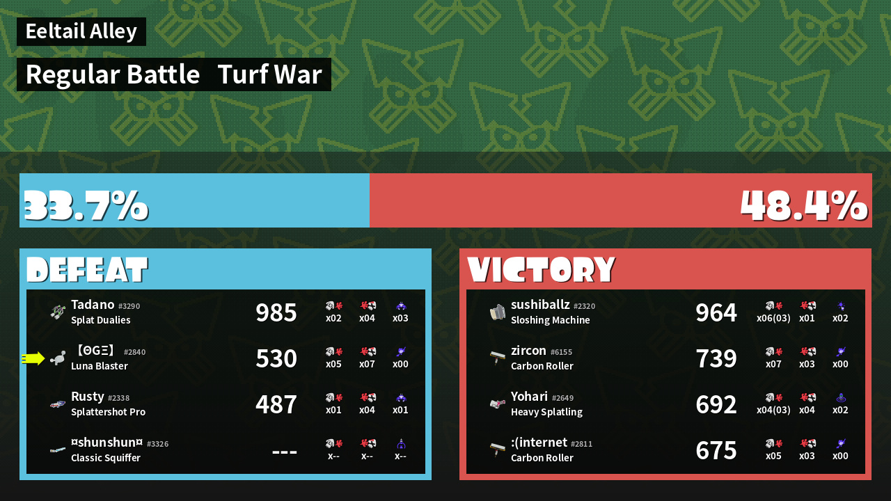 | Mode | Turf War - Regular Battle | ||